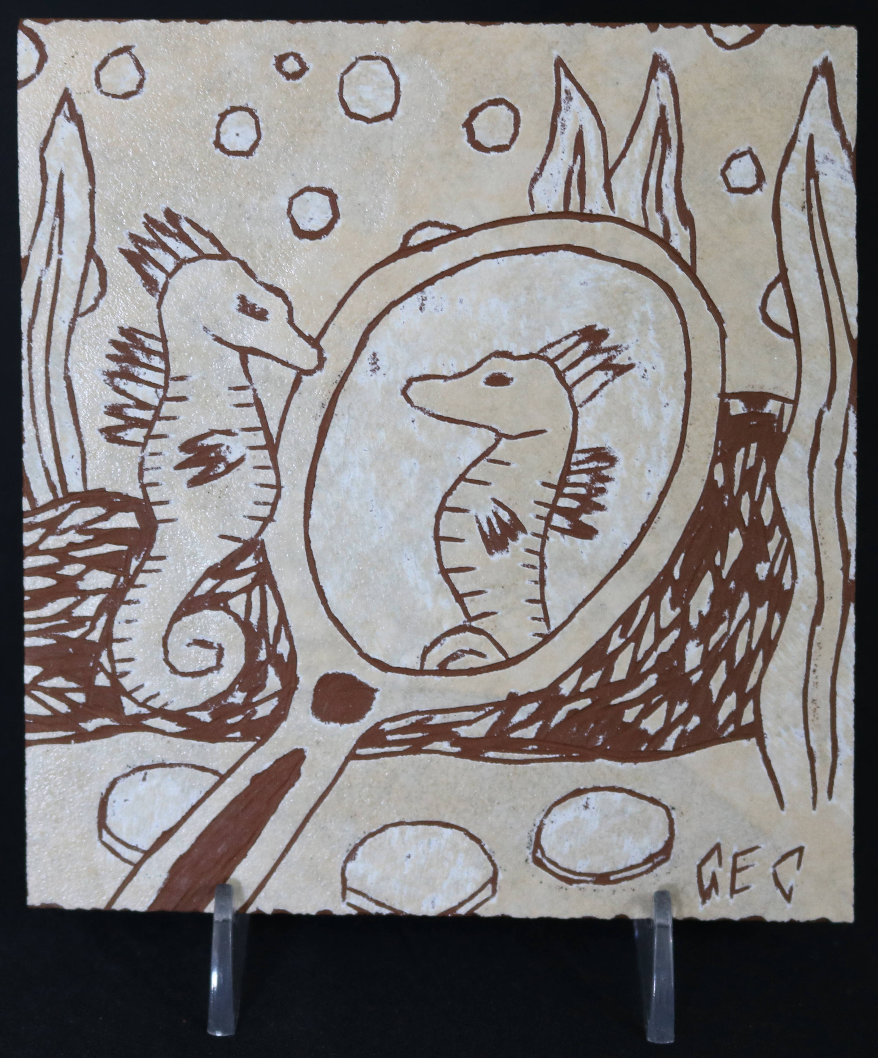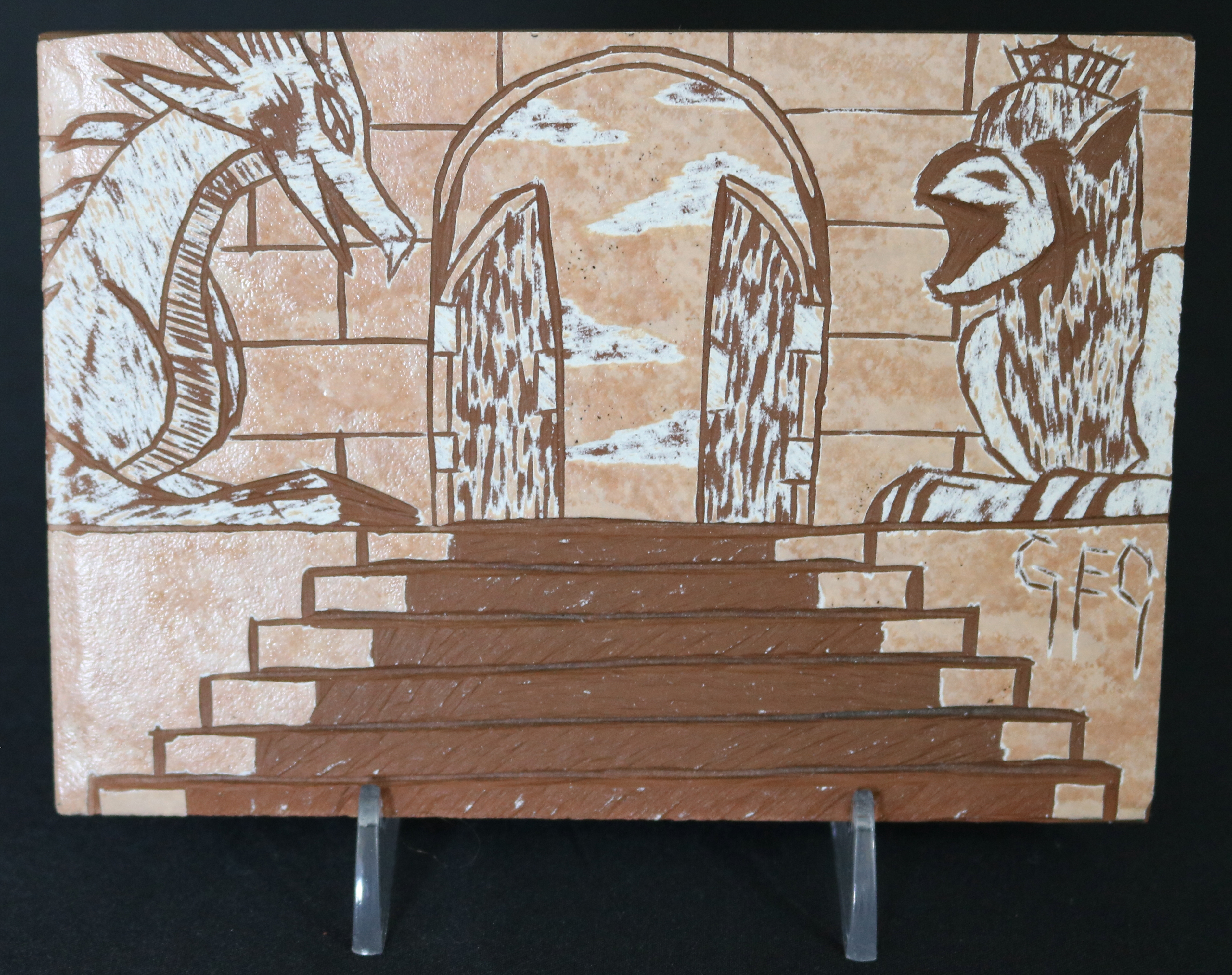 Needless to say, using tile as an art medium is considerably more challenging than the standard paint canvas. Creating a connection with the art medium is essential for the artist to fully communicate the art from muse to reality. Tile can be uncooperative at times and presents a challenge. Once conveyed, the final artwork is “etched in stone” to be here on earth for generations after generations to enjoy.